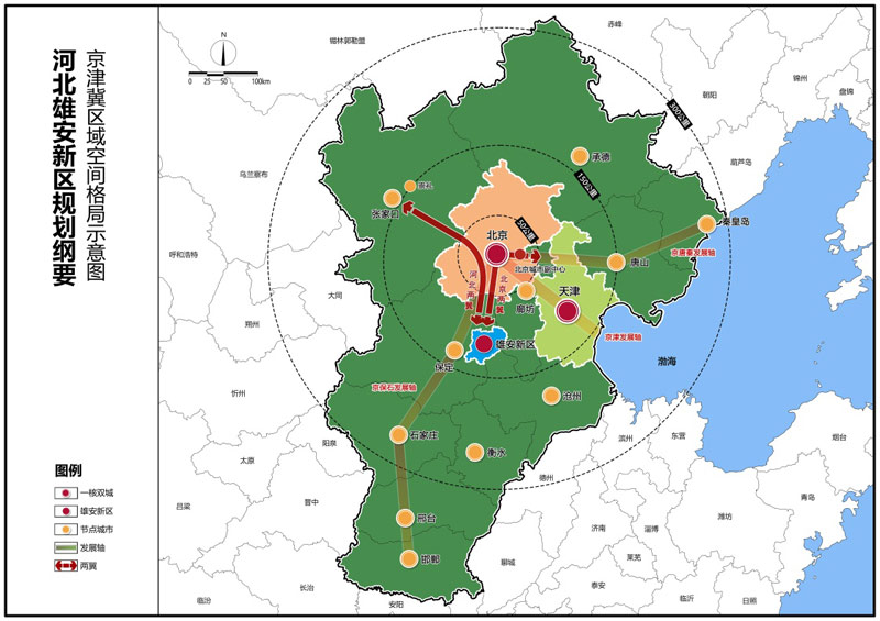坚持以资源环境承载能力为刚性约束条件,以承接北京非首都功能疏解为重点,科学确定新区开发边界、人口规模、用地规模和开发强度,形成规模适度、空间有序、用地节约集约的城乡发展新格局。